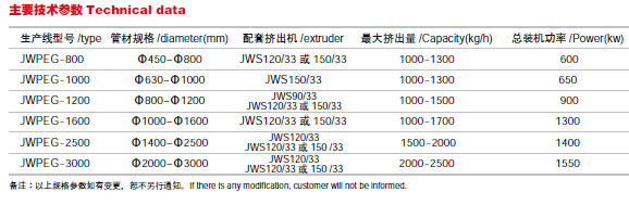 定可靠。該生產線生產的管道具有適度的剛性、強度、又具有良好的柔性、耐蠕變性、耐環境應力開裂性和良好的熱熔接性能,