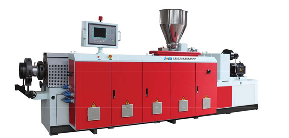 根據市場及客戶需求,我司成功開發出同向錐形雙螺桿擠出機,主要用于生產PVC硬料和電纜料造粒,該設備主要有產量高、 能耗低兩大顯著優點,深受用戶歡迎.