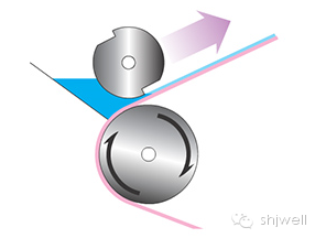 同傳統的凹版方式一樣,微凹涂布也需要刮刀,但是微凹涂布中刮刀的使用在硬度和角度上有所不同。同傳統的刮刀相比,微凹用的刮刀薄且柔韌性要好,刮刀的壓力輕,刮刀的角度比較陡,刮刀的延長線基本會通過涂布輥中心。涂布輥與刮刀柔和地接觸,因此在微凹涂布中,刮刀和涂布輥的壽命較長。