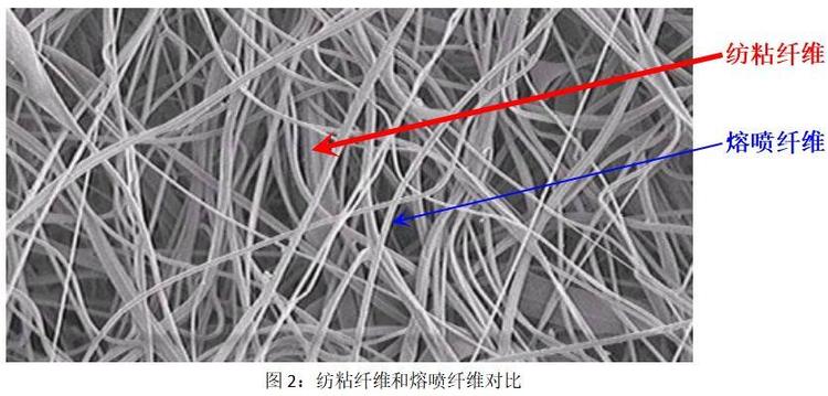 將紡制粘合層的纖維,噴層M將纖維和頭發的形狀進行比較,如下面所示,頭發的直徑為三分之一,接近紡制粘合層的纖維,和頭發直徑的1/30,噴層接近M纖維直徑,當然也在開發更細的纖維,以確保更好的抗菌屏障性能。